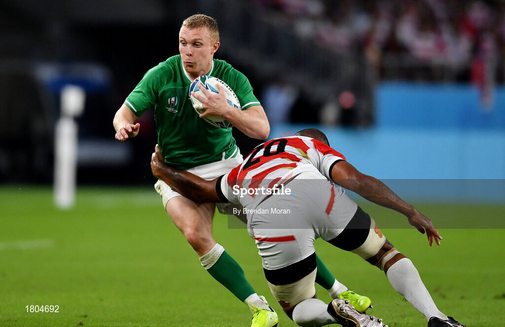28 September 2019; Keith Earls of Ireland is tackled by Michael Leitch of Japan during the 2019 Rugby World Cup Pool A match between Japan and Ireland at the Shizuoka Stadium Ecopa in Fukuroi, Shizuoka Prefecture, Japan. Photo by Brendan Moran/Sportsfile