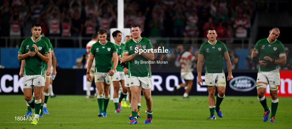 28 September 2019; Ireland players, from left, Conor Murray, Garry Ringrose, Peter O'Mahony, CJ Stander and Rhys Ruddock following the 2019 Rugby World Cup Pool A match between Japan and Ireland at the Shizuoka Stadium Ecopa in Fukuroi, Shizuoka Prefecture, Japan. Photo by Brendan Moran/Sportsfile