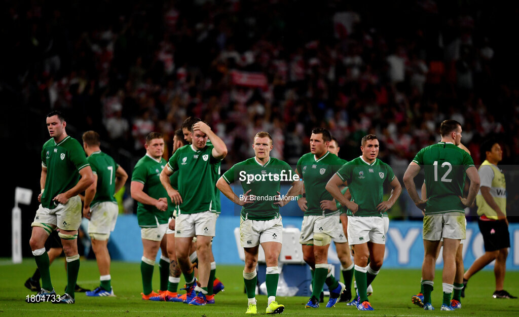 28 September 2019; Keith Earls and Ireland team-mates following the 2019 Rugby World Cup Pool A match between Japan and Ireland at the Shizuoka Stadium Ecopa in Fukuroi, Shizuoka Prefecture, Japan. Photo by Brendan Moran/Sportsfile