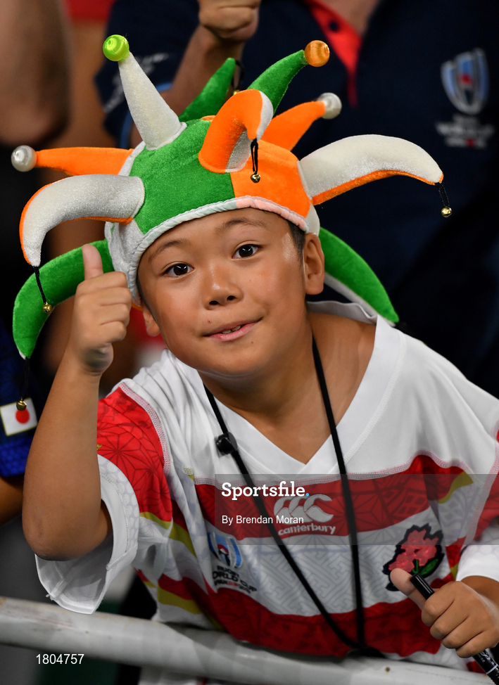 28 September 2019; A young Japan supporter following the 2019 Rugby World Cup Pool A match between Japan and Ireland at the Shizuoka Stadium Ecopa in Fukuroi, Shizuoka Prefecture, Japan. Photo by Brendan Moran/Sportsfile