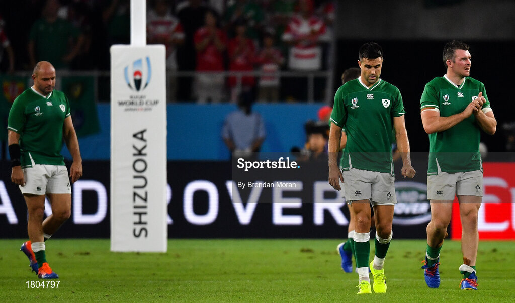 28 September 2019; Ireland players, from left, Rory Best, Conor Murray and Peter O'Mahony after the 2019 Rugby World Cup Pool A match between Japan and Ireland at the Shizuoka Stadium Ecopa in Fukuroi, Shizuoka Prefecture, Japan. Photo by Brendan Moran/Sportsfile