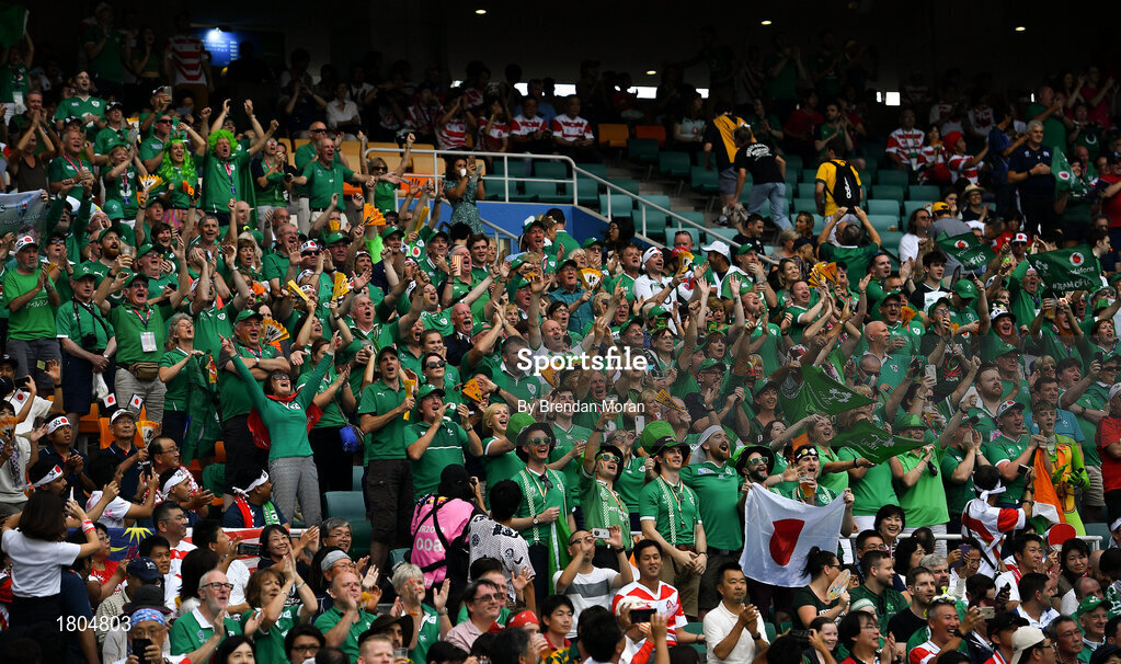 28 September 2019; Ireland supporters during the 2019 Rugby World Cup Pool A match between Japan and Ireland at the Shizuoka Stadium Ecopa in Fukuroi, Shizuoka Prefecture, Japan. Photo by Brendan Moran/Sportsfile