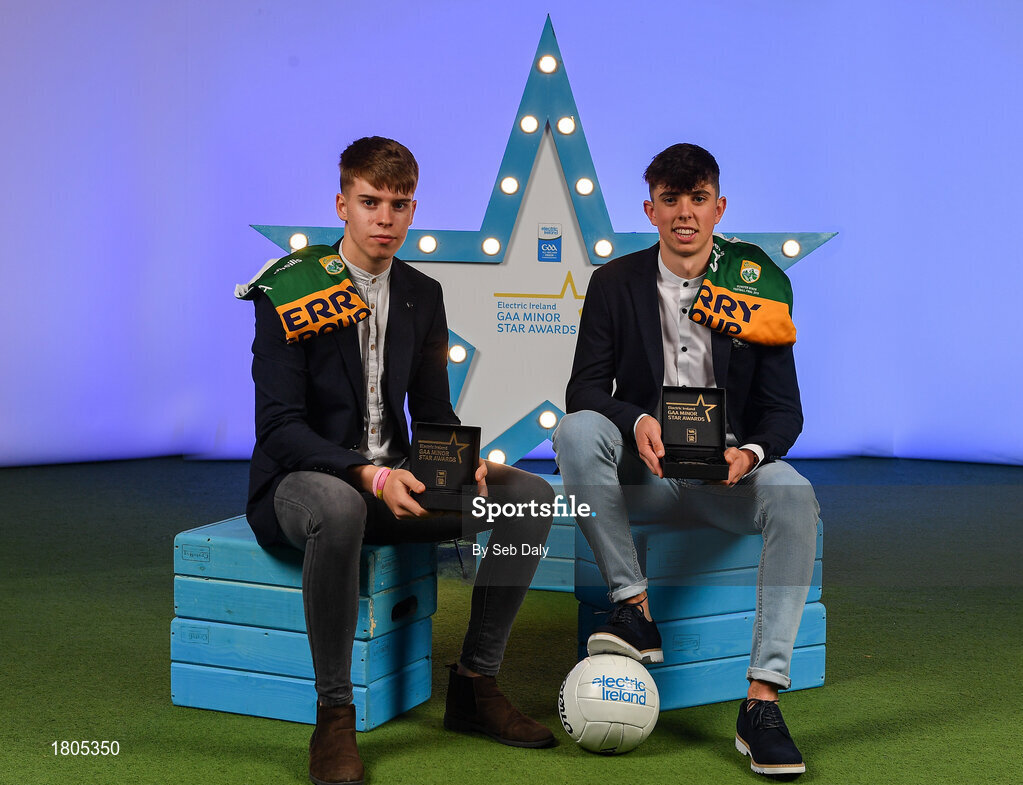 28 September 2019; Pictured are Kerry's Minor footballers Devon Burns, left, and Dylan Geaney who were named on the Electric Ireland Minor Football Team of the Year at the 2019 Electric Ireland Minor Star Awards. The Football Team of the Year was selected by an expert panel of GAA legends including Alan Kerins, Derek McGrath, Karl Lacey and Tomás Quinn. The Electric Ireland GAA Minor Star Awards create a major moment for Minor players, showcasing the outstanding achievements of individual performers throughout the Championship season. The awards also recognise the effort of those who support them day in and day out, from their coaches to parents, clubs and communities. #GAAThisIsMajor Photo by Seb Daly/Sportsfile