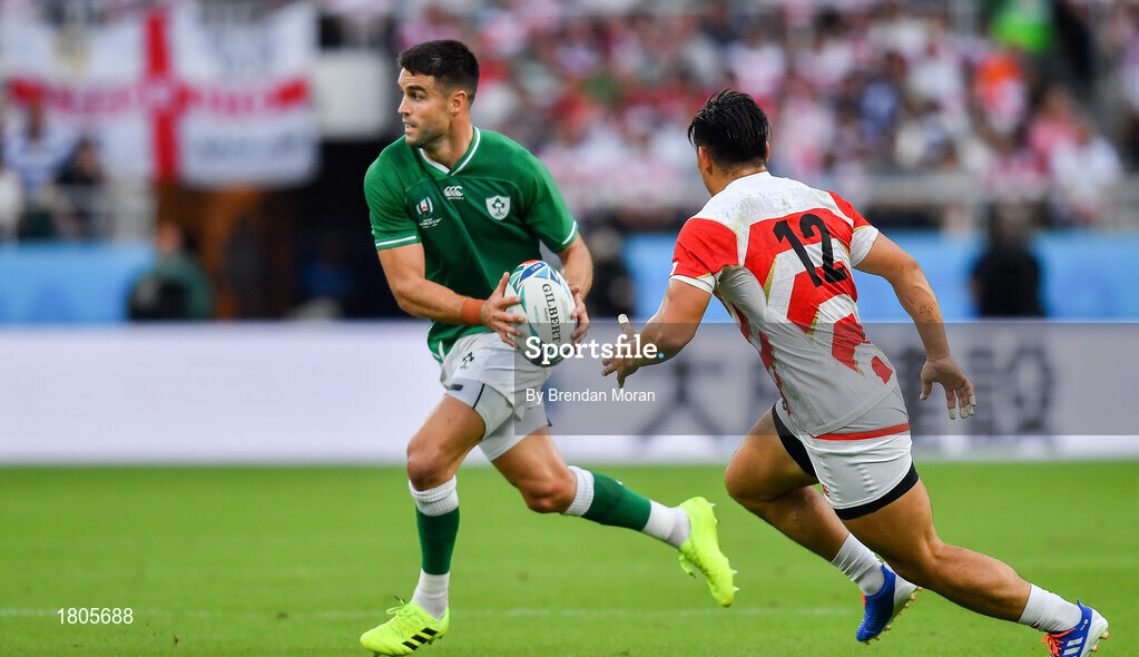 28 September 2019; Conor Murray of Ireland in action against Ryoto Nakamura of Japan during the 2019 Rugby World Cup Pool A match between Japan and Ireland at the Shizuoka Stadium Ecopa in Fukuroi, Shizuoka Prefecture, Japan. Photo by Brendan Moran/Sportsfile