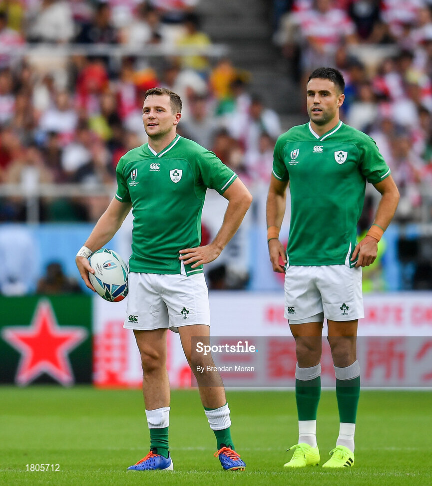 28 September 2019; Jack Carty, left, and Conor Murray of Ireland during the 2019 Rugby World Cup Pool A match between Japan and Ireland at the Shizuoka Stadium Ecopa in Fukuroi, Shizuoka Prefecture, Japan. Photo by Brendan Moran/Sportsfile