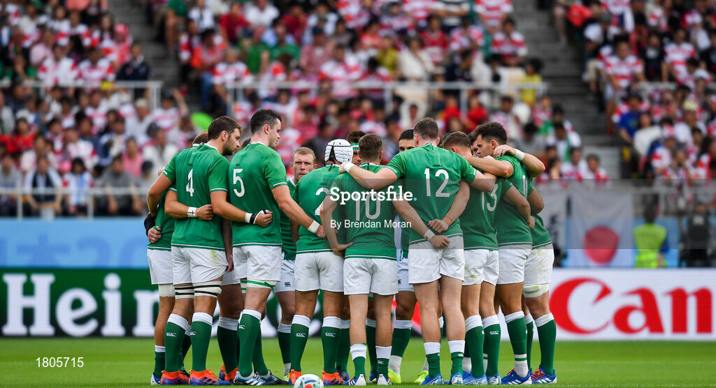 28 September 2019; The Ireland team huddle prior to the 2019 Rugby World Cup Pool A match between Japan and Ireland at the Shizuoka Stadium Ecopa in Fukuroi, Shizuoka Prefecture, Japan. Photo by Brendan Moran/Sportsfile