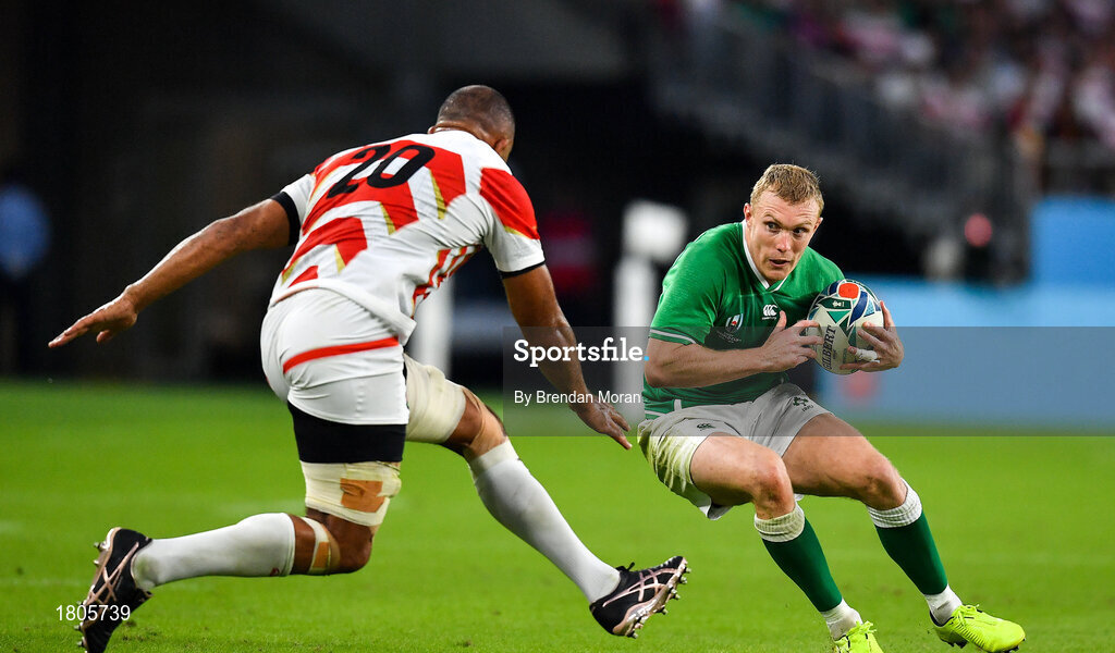 28 September 2019; Keith Earls of Ireland in action against Michael Leitch of Japan during the 2019 Rugby World Cup Pool A match between Japan and Ireland at the Shizuoka Stadium Ecopa in Fukuroi, Shizuoka Prefecture, Japan. Photo by Brendan Moran/Sportsfile