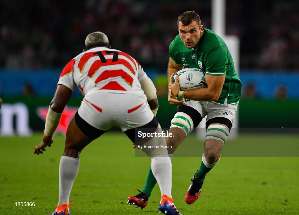 28 September 2019; Tadhg Beirne of Ireland in action against Isileli Nakajima of Japan during the 2019 Rugby World Cup Pool A match between Japan and Ireland at the Shizuoka Stadium Ecopa in Fukuroi, Shizuoka Prefecture, Japan. Photo by Brendan Moran/Sportsfile