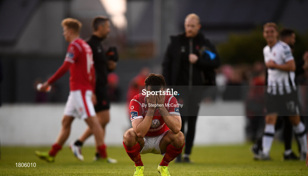 29 September 2019; A dejected John Mahon of Sligo Rovers following the Extra.ie FAI Cup Semi-Final match between Sligo Rovers and Dundalk at The Showgrounds in Sligo. Photo by Stephen McCarthy/Sportsfile