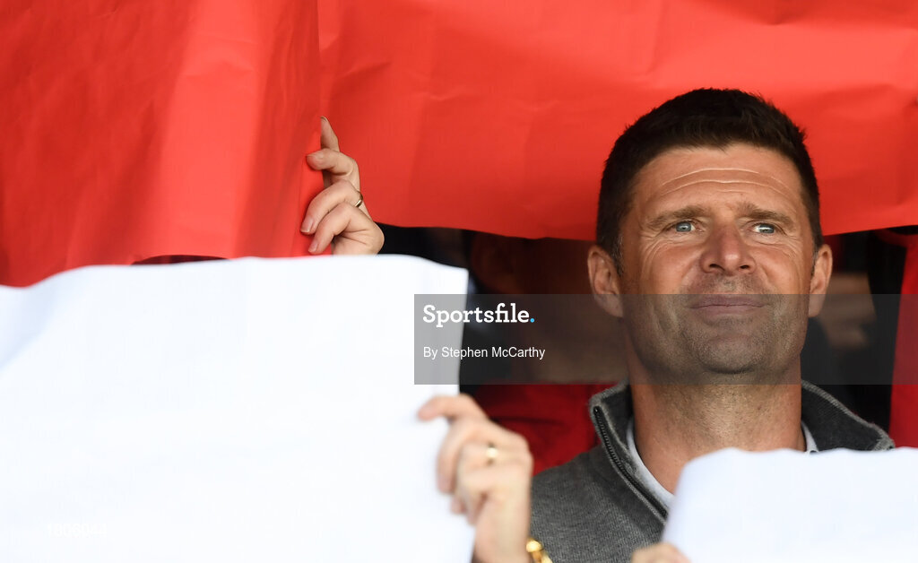29 September 2019; Former Republic of Ireland international Niall Quinn watches on during the Extra.ie FAI Cup Semi-Final match between Sligo Rovers and Dundalk at The Showgrounds in Sligo. Photo by Stephen McCarthy/Sportsfile
