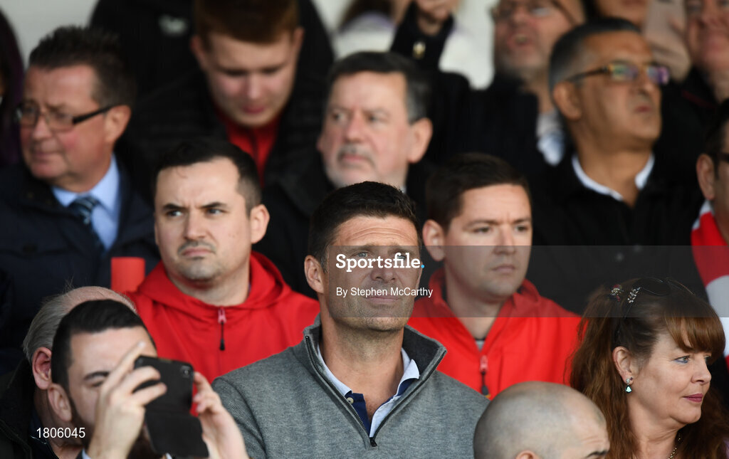29 September 2019; Former Republic of Ireland international Niall Quinn watches on during the Extra.ie FAI Cup Semi-Final match between Sligo Rovers and Dundalk at The Showgrounds in Sligo. Photo by Stephen McCarthy/Sportsfile