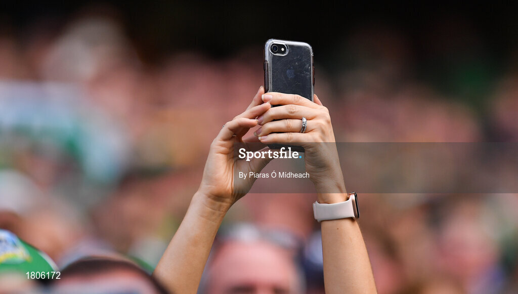 27 July 2019; A spectator takes a photograph during the GAA Hurling All-Ireland Senior Championship Semi-Final match between Kilkenny and Limerick at Croke Park in Dublin. Photo by Piaras Ó Mídheach/Sportsfile