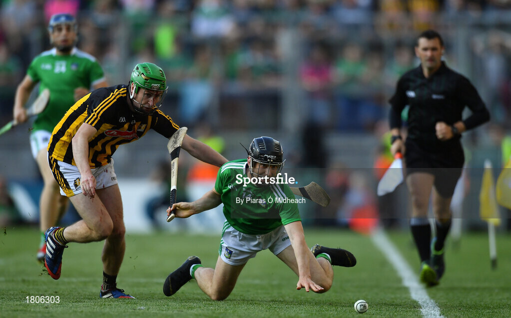 27 July 2019; Graeme Mulcahy of Limerick in action against Joey Holden of Kilkenny during the GAA Hurling All-Ireland Senior Championship Semi-Final match between Kilkenny and Limerick at Croke Park in Dublin. Photo by Piaras Ó Mídheach/Sportsfile