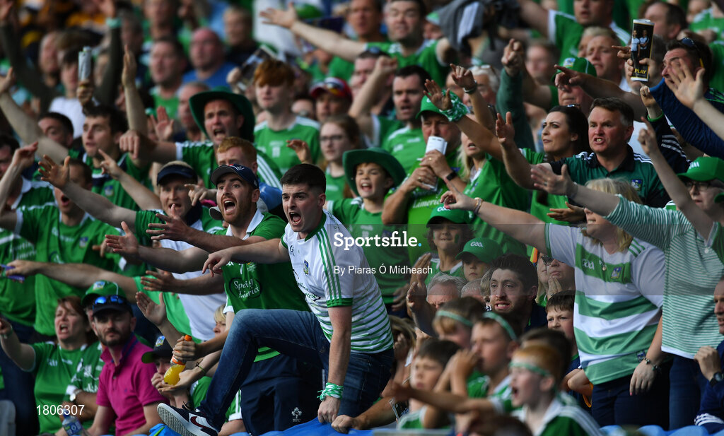 27 July 2019; Limerick supporters appeal for a '65 after Darragh O'Donovan of Limerick took a sideline cut near the end of the GAA Hurling All-Ireland Senior Championship Semi-Final match between Kilkenny and Limerick at Croke Park in Dublin. Photo by Piaras Ó Mídheach/Sportsfile