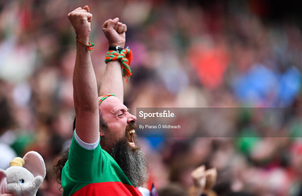 10 August 2019; A Mayo supporter during the GAA Football All-Ireland Senior Championship Semi-Final match between Dublin and Mayo at Croke Park in Dublin. Photo by Piaras Ó Mídheach/Sportsfile