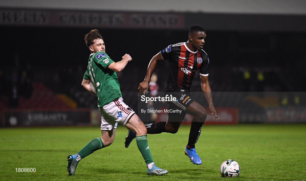 4 October 2019; Andre Wright of Bohemians and Dale Holland of Cork City during the SSE Airtricity League Premier Division match between Bohemians and Cork City at Dalymount Park in Dublin. Photo by Stephen McCarthy/Sportsfile