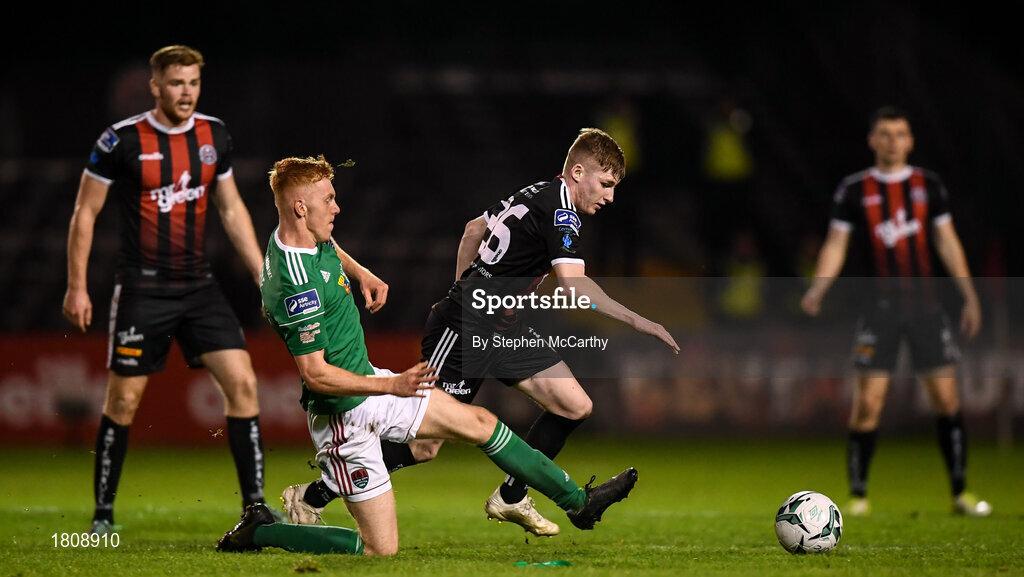 4 October 2019; Ross Tierney of Bohemians and Alec Byrne of Cork City during the SSE Airtricity League Premier Division match between Bohemians and Cork City at Dalymount Park in Dublin. Photo by Stephen McCarthy/Sportsfile