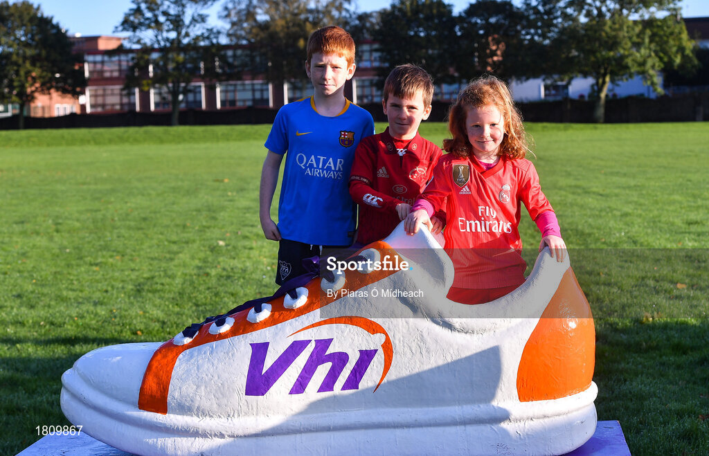 6 October 2019; Siblings, from left, Odhran, Oisín and Eabha McGuinness pictured at the Shelbourne Junior parkrun where Vhi hosted a special event to celebrate their partnership with parkrun Ireland. Vhi hosted a lively warm up routine which was great fun for children and adults alike. Crossing the finish line was a special experience as children were showered with bubbles and streamers to celebrate their achievement and each child received a gift. Junior parkrun in partnership with Vhi support local communities in organising free, weekly, timed 2km runs every Sunday at 9.30am. To register for a parkrun near you visit www.parkrun.ie. Photo by Piaras Ó Mídheach/Sportsfile