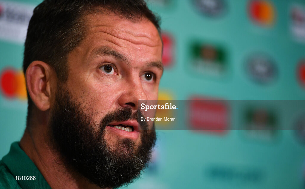 7 October 2019; Defence coach Andy Farrell during an Ireland Rugby press conference at the Grand Hyatt in Fukuoka, Japan. Photo by Brendan Moran/Sportsfile