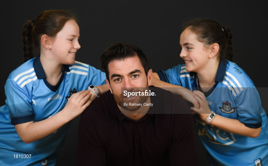 7 October 2019; Warming up for Energy Action’s Fuel Poverty Conference launch is Michael Darragh MacAuley, North Inner City hero and seven times GAA Football All-Ireland Senior Championship winner, with 10 year old twins Katie, right, and Ella, at the launch of the Energy Action Fuel Poverty Conference at The Lab, Foley Street, Dublin 1 co-sponsored by Electric Ireland. The Fuel Poverty Conference focuses on fuel poverty in Ireland, creating dialogue between policy makers, utilities agencies and community groups supporting vulnerable customers. It runs on October 21st, 2019 at 9:30am in the Croke Park Conference Centre. Photo by Ramsey Cardy/Sportsfile