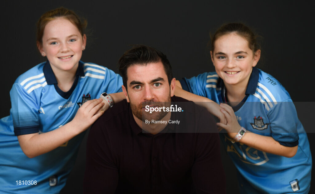 7 October 2019; Warming up for Energy Action’s Fuel Poverty Conference launch is Michael Darragh MacAuley, North Inner City hero and seven times GAA Football All-Ireland Senior Championship winner, with 10 year old twins Katie, right, and Ella, at the launch of the Energy Action Fuel Poverty Conference at The Lab, Foley Street, Dublin 1 co-sponsored by Electric Ireland. The Fuel Poverty Conference focuses on fuel poverty in Ireland, creating dialogue between policy makers, utilities agencies and community groups supporting vulnerable customers. It runs on October 21st, 2019 at 9:30am in the Croke Park Conference Centre. Photo by Ramsey Cardy/Sportsfile