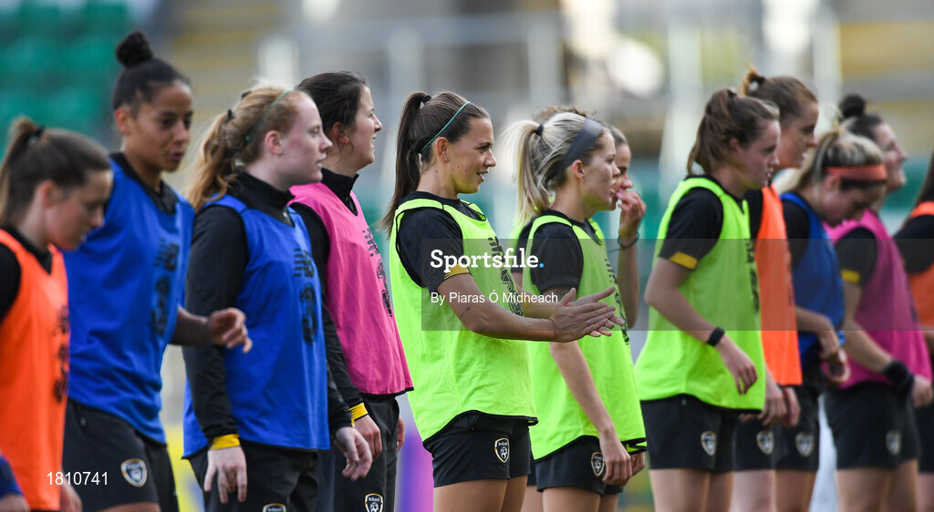 7 October 2019; Katie McCabe, centre, during a Republic of Ireland Women's team training session at Tallaght Stadium in Tallaght, Dublin. Photo by Piaras Ó Mídheach/Sportsfile