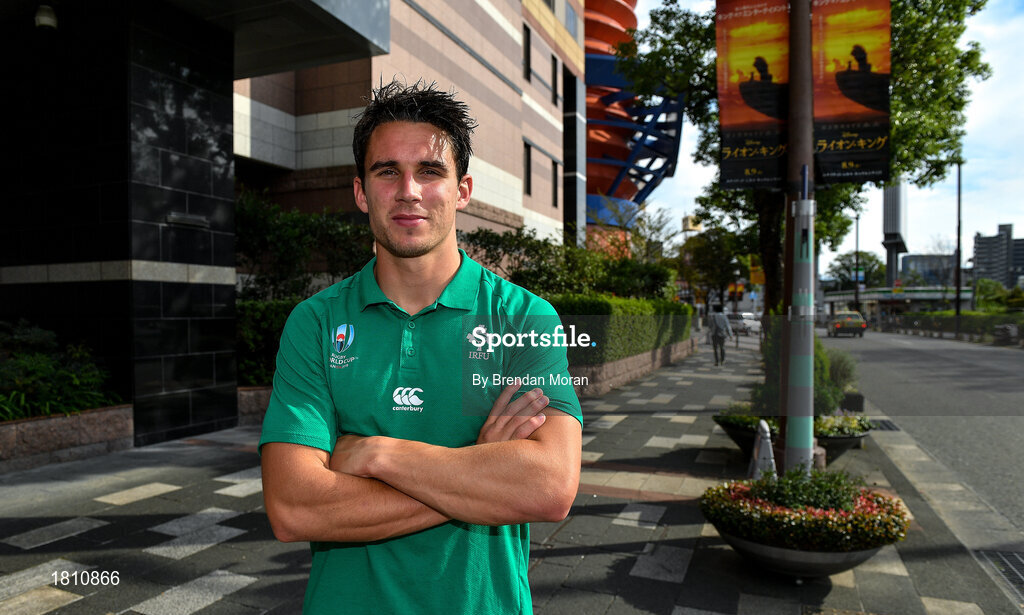 8 October 2019; Joey Carbery poses for a portrait after an Ireland Rugby press conference at the Grand Hyatt in Fukuoka, Japan. Photo by Brendan Moran/Sportsfile
