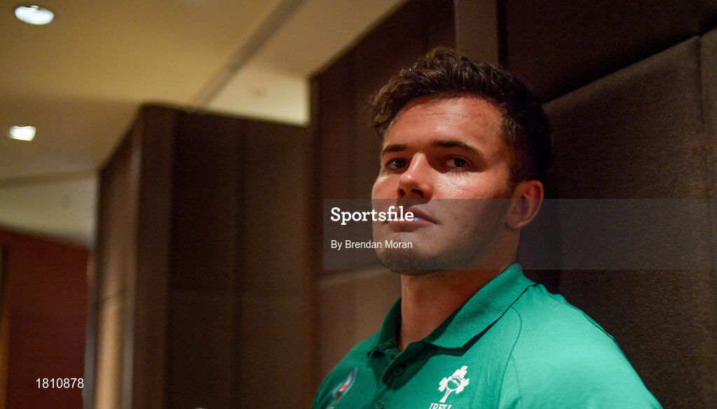 8 October 2019; Jacob Stockdale poses for a portrait after an Ireland Rugby press conference at the Grand Hyatt in Fukuoka, Japan. Photo by Brendan Moran/Sportsfile