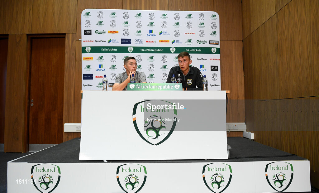 8 October 2019; Conor Coventry, left, and Conor Masterson during a Republic of Ireland U21's Press Conference at FAI National Training Centre in Abbotstown, Dublin. Photo by Harry Murphy/Sportsfile