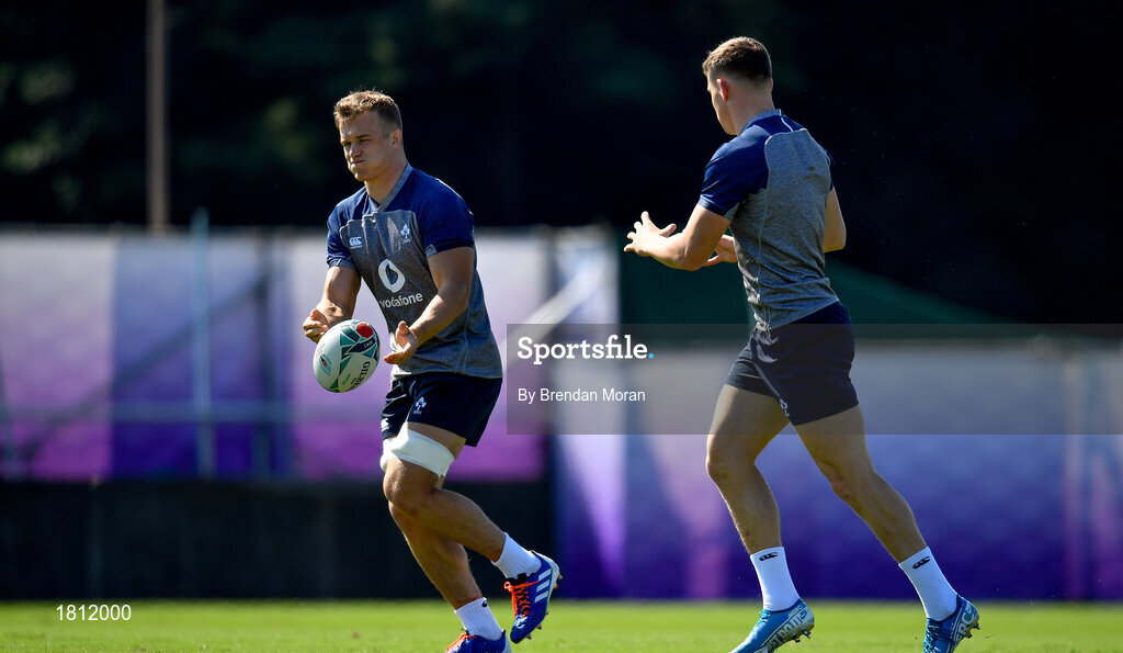 10 October 2019; Josh van der Flier, left, and Garry Ringrose during Ireland Rugby squad training at Shirouzuoike Park in Fukuoka, Japan. Photo by Brendan Moran/Sportsfile