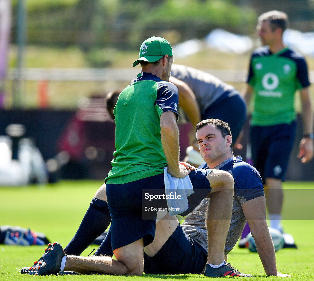10 October 2019; James Ryan with forwards coach Simon Easterby during Ireland Rugby squad training at Shirouzuoike Park in Fukuoka, Japan. Photo by Brendan Moran/Sportsfile