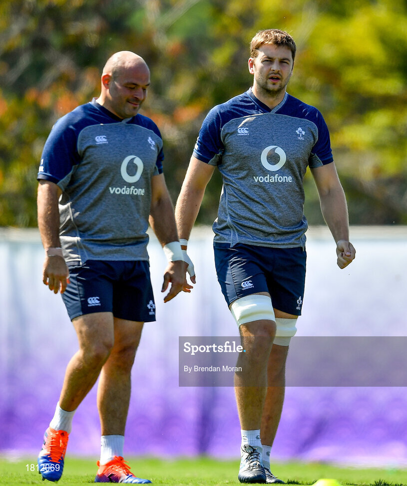 10 October 2019; Iain Henderson, right, and Rory Best during Ireland Rugby squad training at Shirouzuoike Park in Fukuoka, Japan. Photo by Brendan Moran/Sportsfile