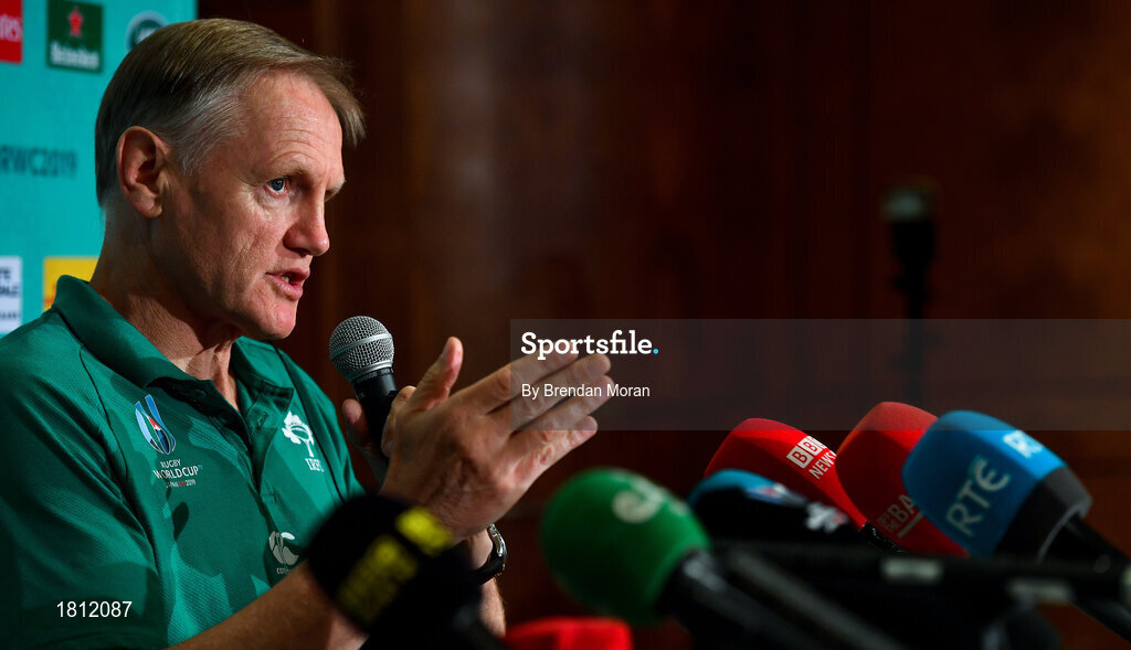 10 October 2019; Head coach Joe Schmidt an Ireland Rugby press conference at the Grand Hyatt in Fukuoka, Japan. Photo by Brendan Moran/Sportsfile