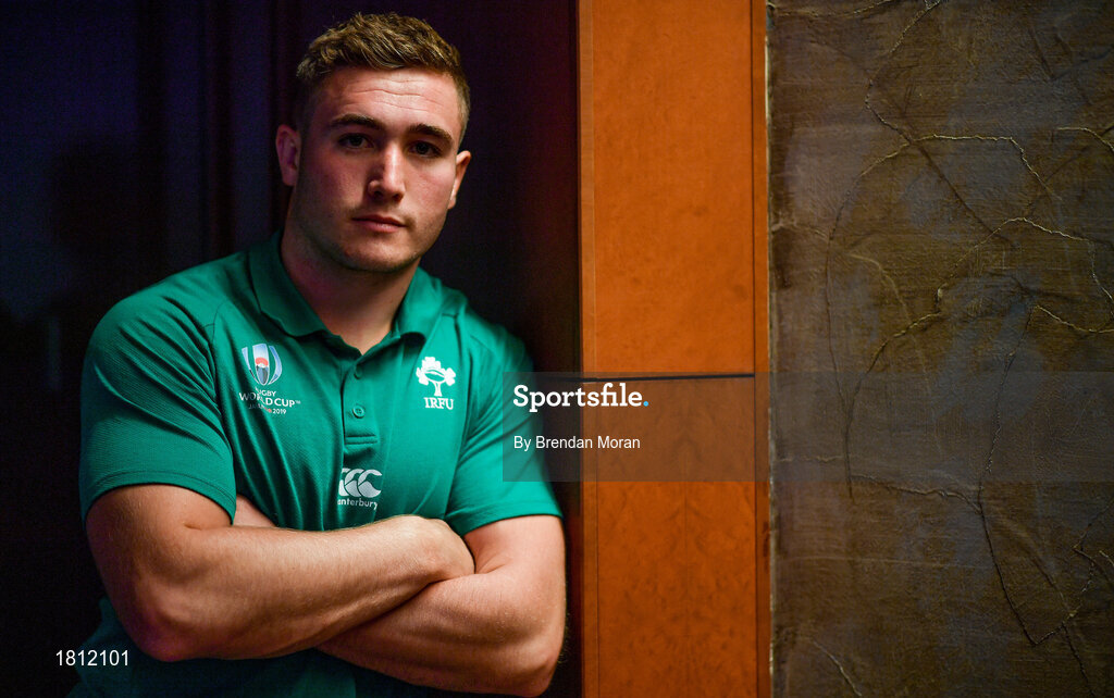 10 October 2019; Jordan Larmour poses for a portrait after an Ireland Rugby press conference at the Grand Hyatt in Fukuoka, Japan. Photo by Brendan Moran/Sportsfile