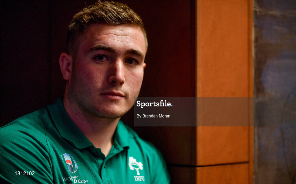 10 October 2019; Jordan Larmour poses for a portrait after an Ireland Rugby press conference at the Grand Hyatt in Fukuoka, Japan. Photo by Brendan Moran/Sportsfile