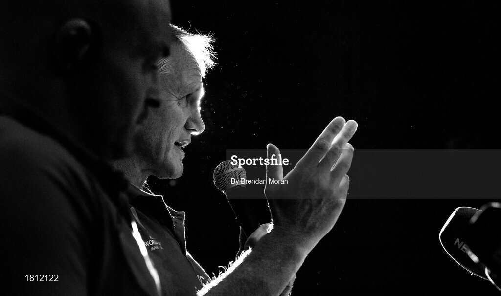 10 October 2019; (EDITOR'S NOTE: Image has been converted to black & white) Head coach Joe Schmidt an Ireland Rugby press conference at the Grand Hyatt in Fukuoka, Japan. Photo by Brendan Moran/Sportsfile
