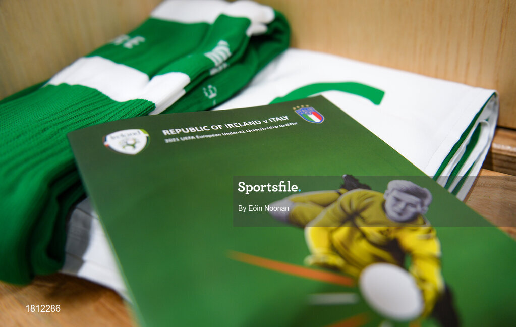 10 October 2019; A detailed view of a match day programme in the dressing room prior to the UEFA European U21 Championship Qualifier Group 1 match between Republic of Ireland and Italy at Tallaght Stadium in Tallaght, Dublin. Photo by Eóin Noonan/Sportsfile
