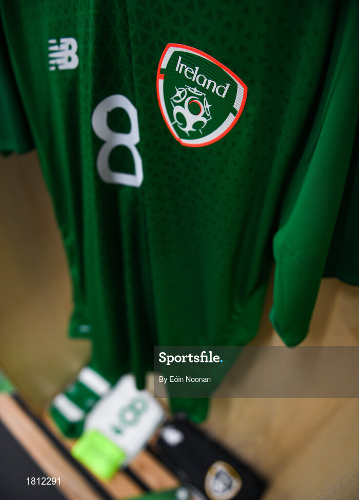 10 October 2019; A detailed view of the jersey assigned to captain Jayson Molumby prior to the UEFA European U21 Championship Qualifier Group 1 match between Republic of Ireland and Italy at Tallaght Stadium in Tallaght, Dublin. Photo by Eóin Noonan/Sportsfile