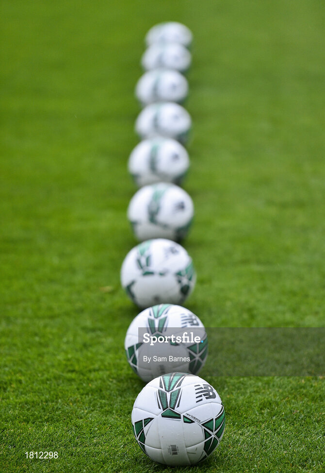 10 October 2019; A general view of footballs on the pitch ahead of the UEFA European U21 Championship Qualifier Group 1 match between Republic of Ireland and Italy at Tallaght Stadium in Tallaght, Dublin. Photo by Sam Barnes/Sportsfile
