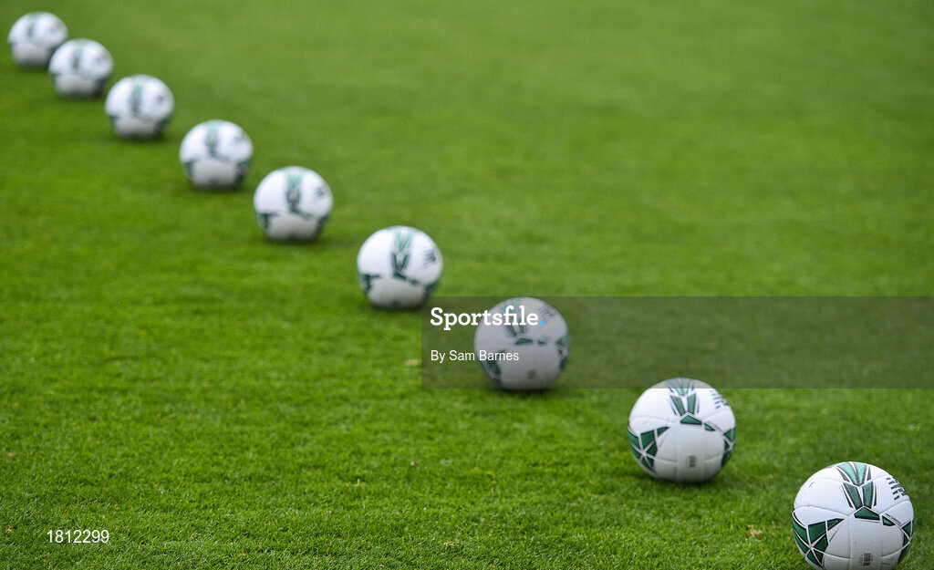 10 October 2019; A general view of footballs on the pitch ahead of the UEFA European U21 Championship Qualifier Group 1 match between Republic of Ireland and Italy at Tallaght Stadium in Tallaght, Dublin. Photo by Sam Barnes/Sportsfile