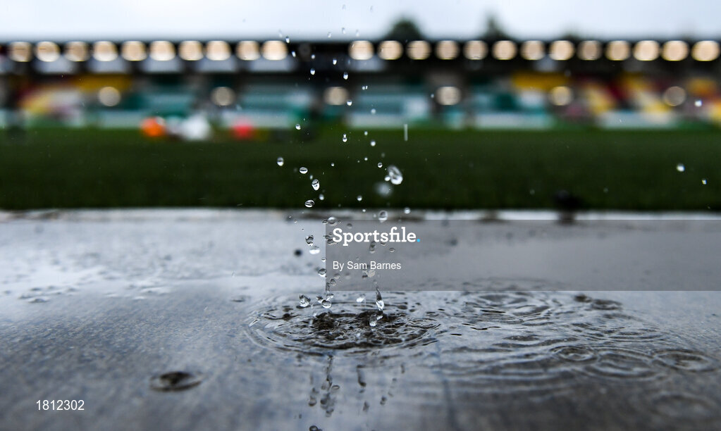 10 October 2019; Rain drips from the home team dug-out ahead of the UEFA European U21 Championship Qualifier Group 1 match between Republic of Ireland and Italy at Tallaght Stadium in Tallaght, Dublin. Photo by Sam Barnes/Sportsfile