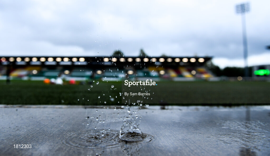 10 October 2019; Rain drips from the home team dug-out ahead of the UEFA European U21 Championship Qualifier Group 1 match between Republic of Ireland and Italy at Tallaght Stadium in Tallaght, Dublin. Photo by Sam Barnes/Sportsfile