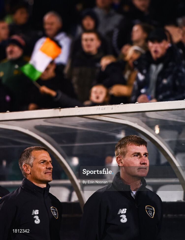 10 October 2019; Republic of Ireland head coach Stephen Kenny, right, and Republic of Ireland assistant coach Jim Crawford prior to the UEFA European U21 Championship Qualifier Group 1 match between Republic of Ireland and Italy at Tallaght Stadium in Tallaght, Dublin. Photo by Eóin Noonan/Sportsfile