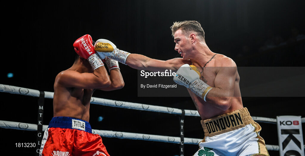 11 October 2019; Paddy Donovan, right, in action against Arturo Lopez during their welterweight bout at the MTK Fight Night in the Ulster Hall, Belfast. Photo by David Fitzgerald/Sportsfile