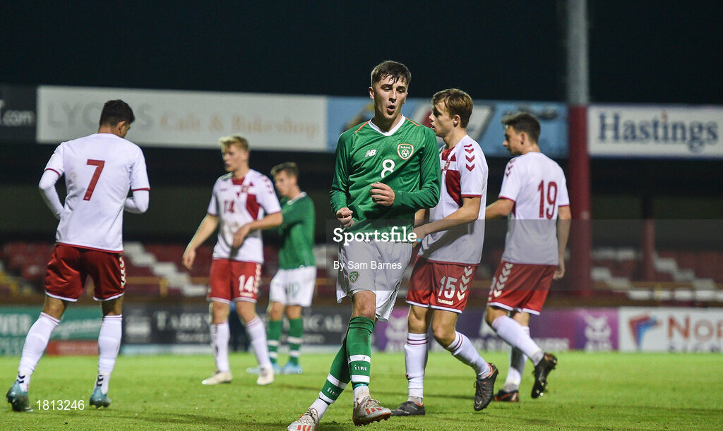 11 October 2019; Barry Coffey of Republic of Ireland reacts to a missed chance during the Under-19 International Friendly match between Republic of Ireland and Denmark at The Showgrounds in Sligo. Photo by Sam Barnes/Sportsfile