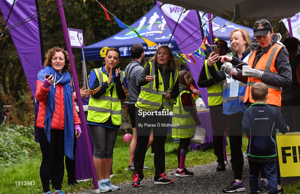 12 October 2019; Attendees at the Monaghan Town parkrun, Rossmore Forest Park, Gortnakeegan, Monaghan, where Vhi hosted a special event to celebrate their partnership with parkrun Ireland. Vhi ambassador and Olympian David Gillick was on hand to lead the warm up for parkrun participants before completing the 5km free event. Parkrunners enjoyed refreshments post event at the Vhi Rehydrate, Relax, Refuel and Reward areas. parkrun in partnership with Vhi support local communities in organising free, weekly, timed 5k runs every Saturday at 9.30am. To register for a parkrun near you visit www.parkrun.ie. Photo by Piaras Ó Mídheach/Sportsfile