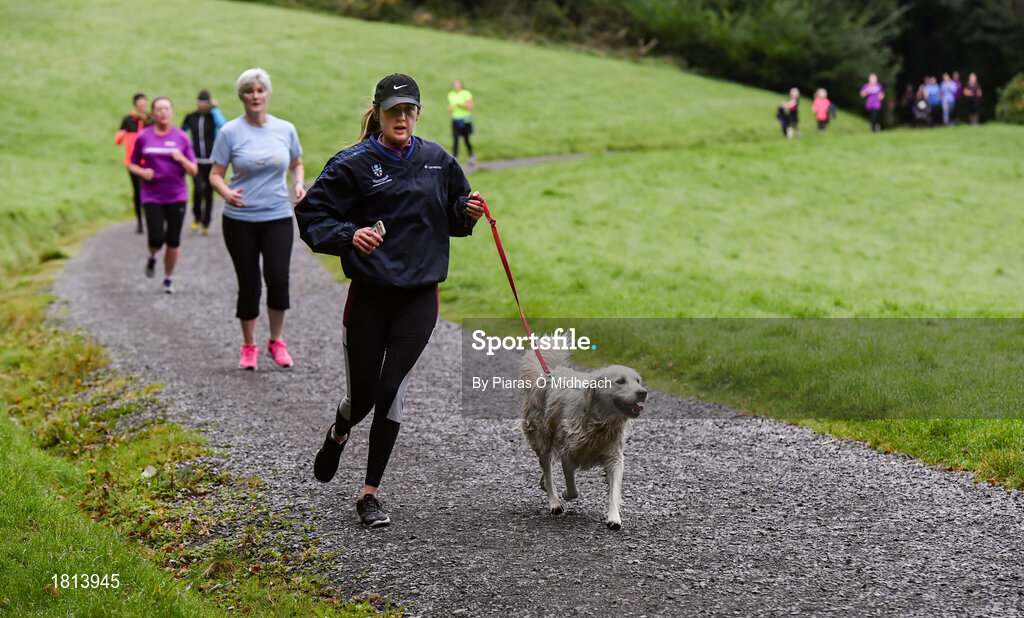 12 October 2019; Attendees pictured at the Monaghan Town parkrun, Rossmore Forest Park, Gortnakeegan, Monaghan, where Vhi hosted a special event to celebrate their partnership with parkrun Ireland. Vhi ambassador and Olympian David Gillick was on hand to lead the warm up for parkrun participants before completing the 5km free event. Parkrunners enjoyed refreshments post event at the Vhi Rehydrate, Relax, Refuel and Reward areas. parkrun in partnership with Vhi support local communities in organising free, weekly, timed 5k runs every Saturday at 9.30am. To register for a parkrun near you visit www.parkrun.ie. Photo by Piaras Ó Mídheach/Sportsfile