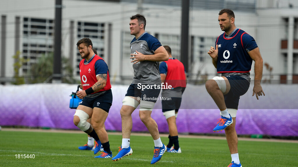 15 October 2019; Tadhg Beirne, right and Peter O'Mahony during Ireland Rugby squad training in Arcs Urayasu Park in Urayasu, Aichi, Japan. Photo by Brendan Moran/Sportsfile