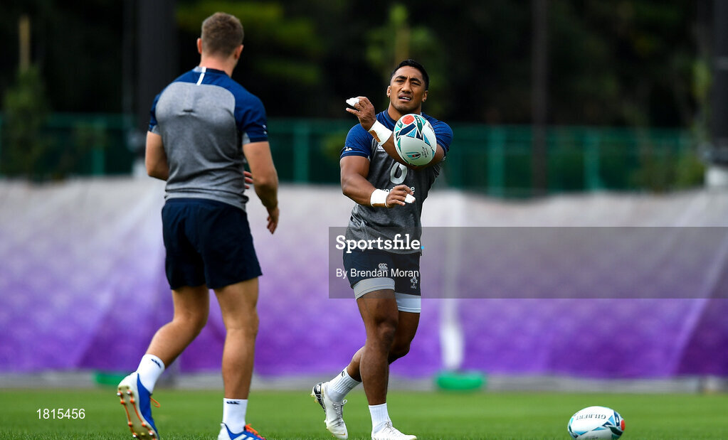 15 October 2019; Bundee Aki, right, and Jordan Larmour during Ireland Rugby squad training in Arcs Urayasu Park in Urayasu, Aichi, Japan. Photo by Brendan Moran/Sportsfile