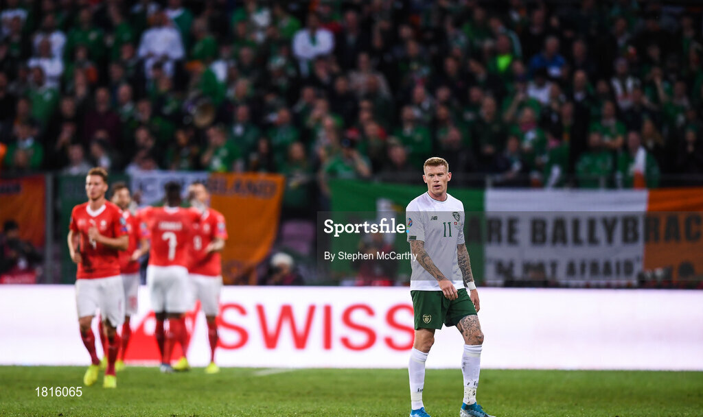 15 October 2019; James McClean of Republic of Ireland reacts after his side conceded their first goal during the UEFA EURO2020 Qualifier match between Switzerland and Republic of Ireland at Stade de Genève in Geneva, Switzerland. Photo by Stephen McCarthy/Sportsfile
